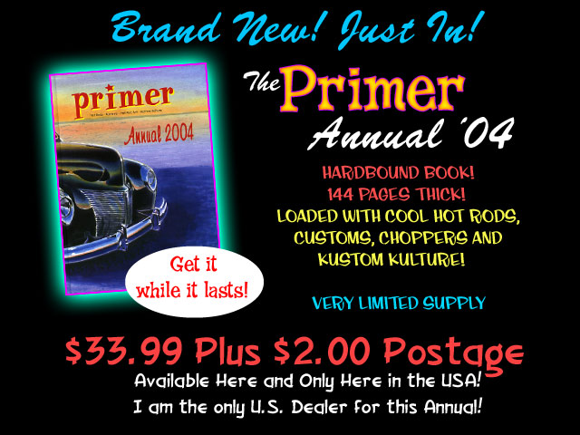 "Hot Rods Annual" 100% Traditional Style Hot Rods! Limited Printing! 48 Pages, Glossy, Mostly Color with some B&W. 8 1/2 X 5 1/2" Format (Digest size) $6.00 each (Includes Postage) U.S. Only. Overseas and Canada residents, please inquire. v8ford@mindspring.com